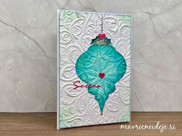 Na sredino sredino snežinke sem dodala še okrasek s srčkom v rdeči barvi.