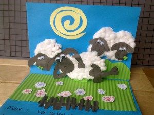 Za izdelavo te voščilnice sem uporabila potiskan papir in trši bel papir za osnovo.