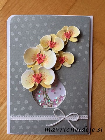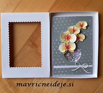 Rumene orhidje že zelo dolgo čakajo na objavo. Voščilnica je izdelana kot darilo s pripadajočo škatlico.