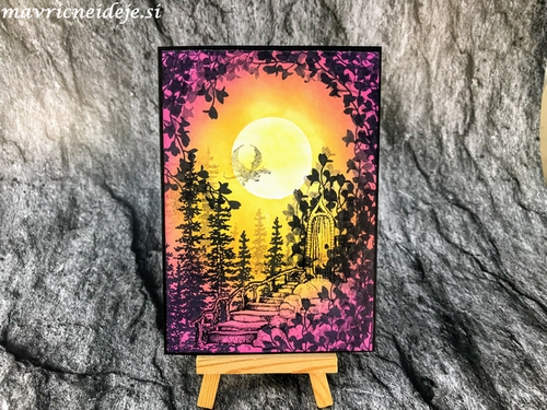 Kristina W. je ponovno pokazala zanimivo barvno kombinacijo Distress Oxidov: ground espresso, faded jeans in tumbled glass. Pri 52 CCT ustvarjajo po skici, ki sem jo videla kot prelivanje omenjenih barv z nekaj dodatki.