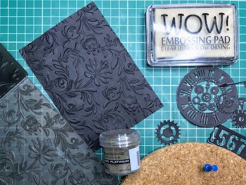 Takole sem si za začetek pripravila nekaj izrezov in pripomočke za suho in vroče embosiranje.
