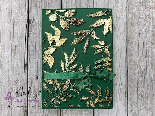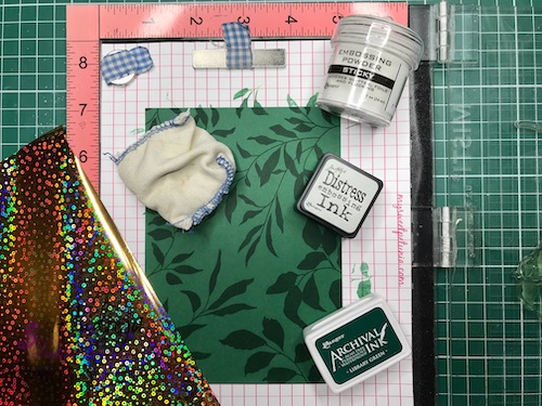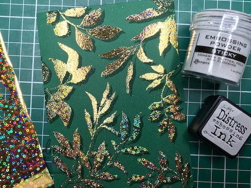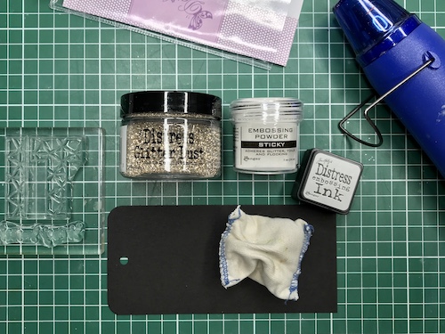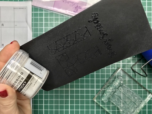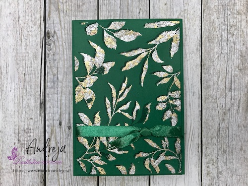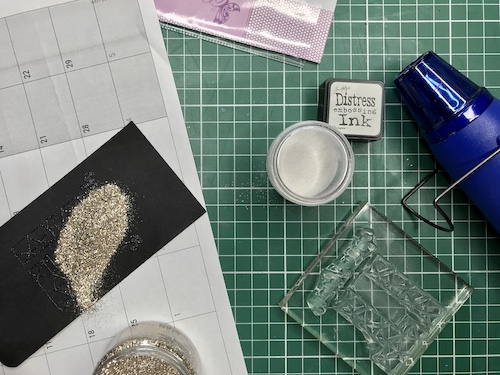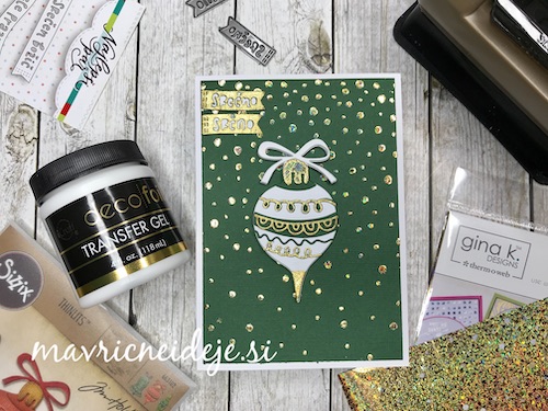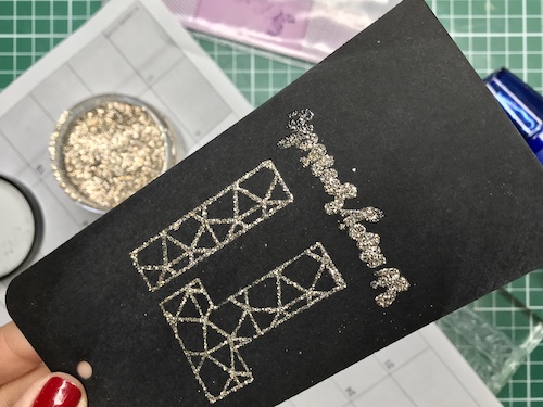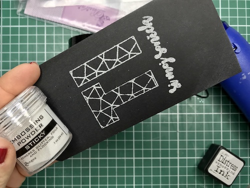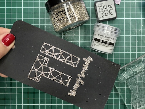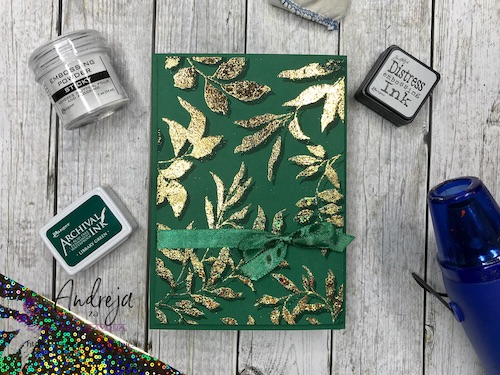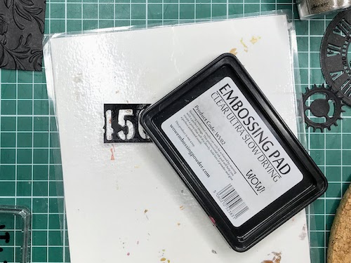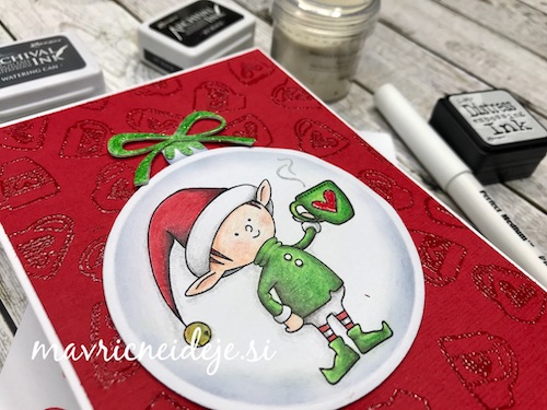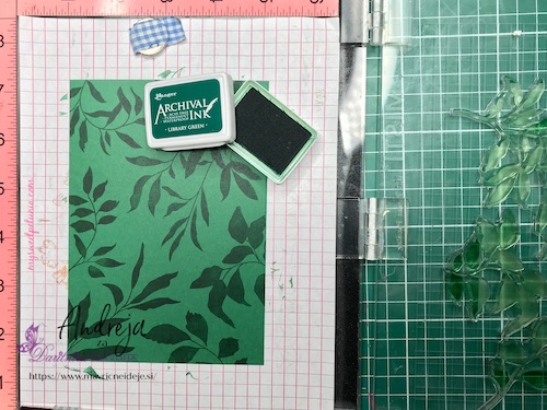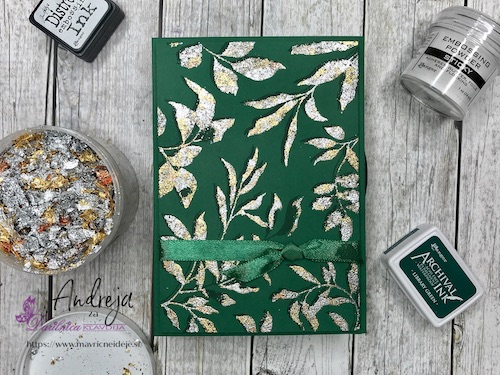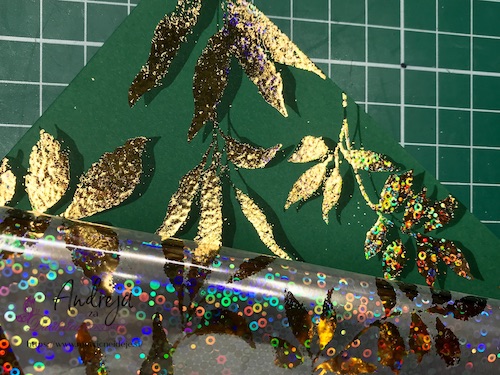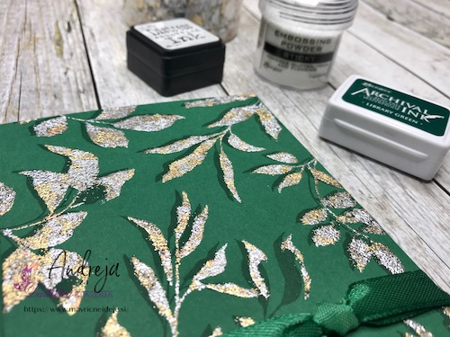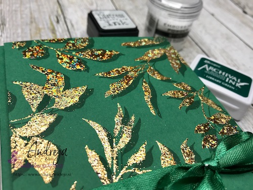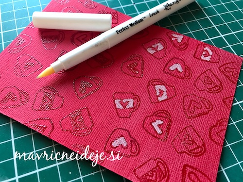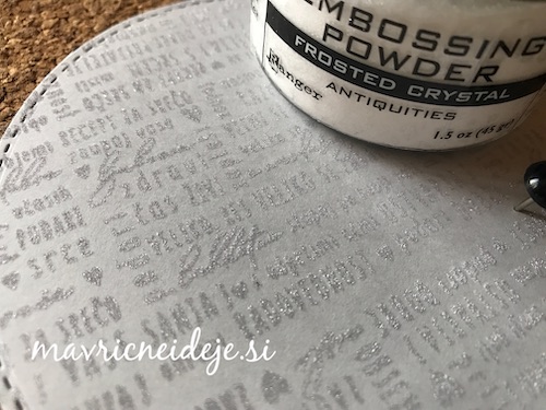 Z embosing blazinico lahko papir premažemo zelo natančno, kar na debelo, teko se prahec res dobro oprime podlage. V tem primeru sem izrez položila na podlago in blazinico večkrat močno pritisnila ob papir.
