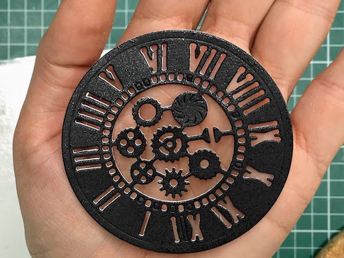 V zadnjem času so zelo popularne 3d embosing srajčke, ki imajo motiv oblikovan v več nivojih. Zato so debelejše, čemur je potrebno malo prilagoditi “sendvič na strojčku”. Da papir med obdelavo ne popoka, ga vedno vsaj z zadnje strani navlažim z vodno meglico. Tim H. pravi, da ker so 3d, potrebujejo tri prehode skozi napravo za embosiranje. Res je relief po treh prehodih zelo natančen in vzorec se krasno vidi.