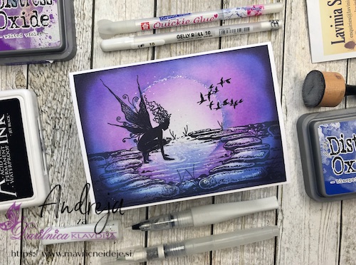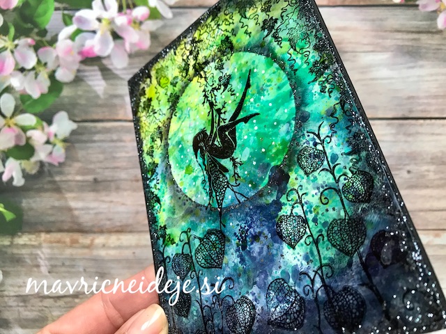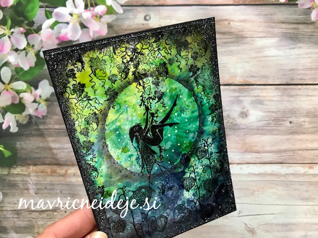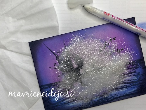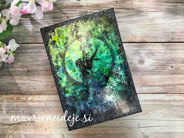Tokrat sem se lotila izdelave fantazijske voščilnice, pri kateri sem uporabila tehniko zrcalnega odtisa, kar si lahko pogledate v videu.