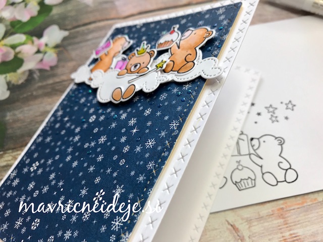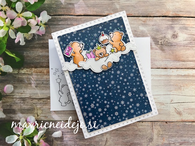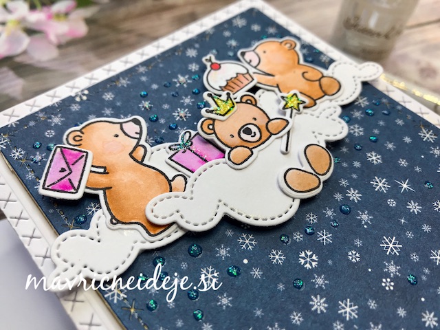 Še simpatični medvedki od blizu. Snežinke sem izbrala namenoma, saj bo šla voščilnica na pošto šele pozimi.