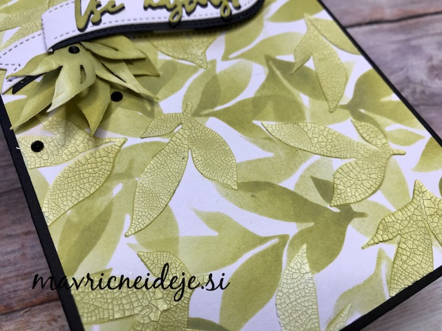 Voščilnico ze zaključila z napisom na zastavici, nekaj izrezi zelenig listov in črnimi bleščicami.