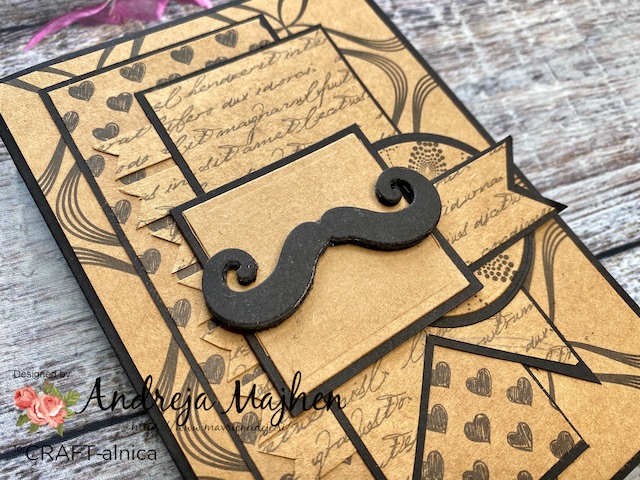 Pri zadnji pa sem Sizzix 662716 botanical srajčko namazala z Distress aged magogany blazinico in embosirala ddeč papir s teksturo, dodala sem še perfect pearls.