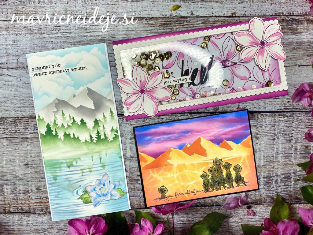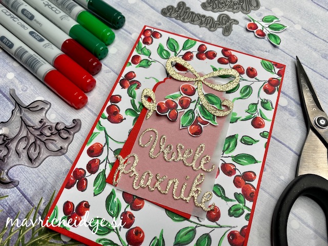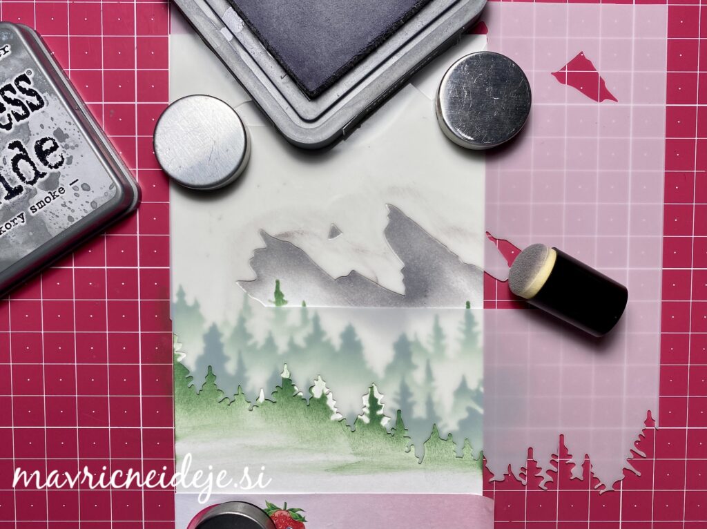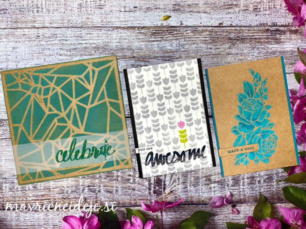 Pri izdelavi sem uporabila različne tehnike: večplastne odtise, embosiranje s stencil šablono, inline izrezovanje, podlaganje izrezov…..