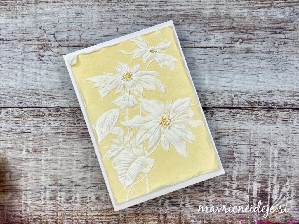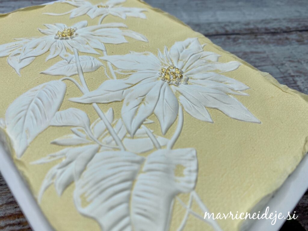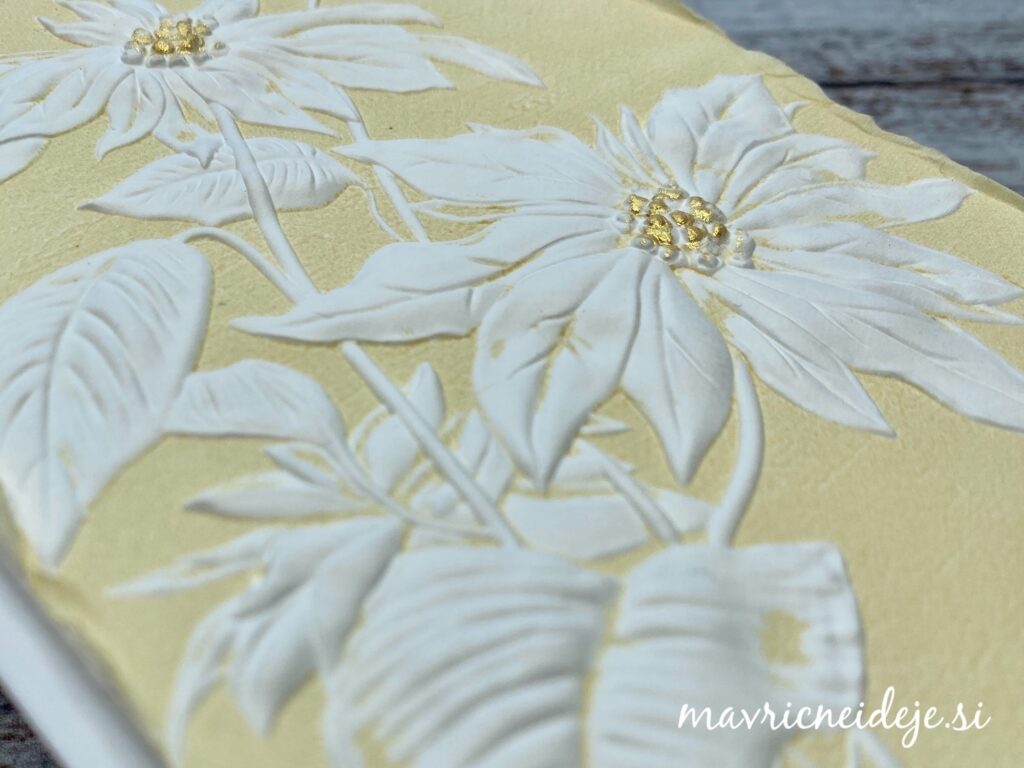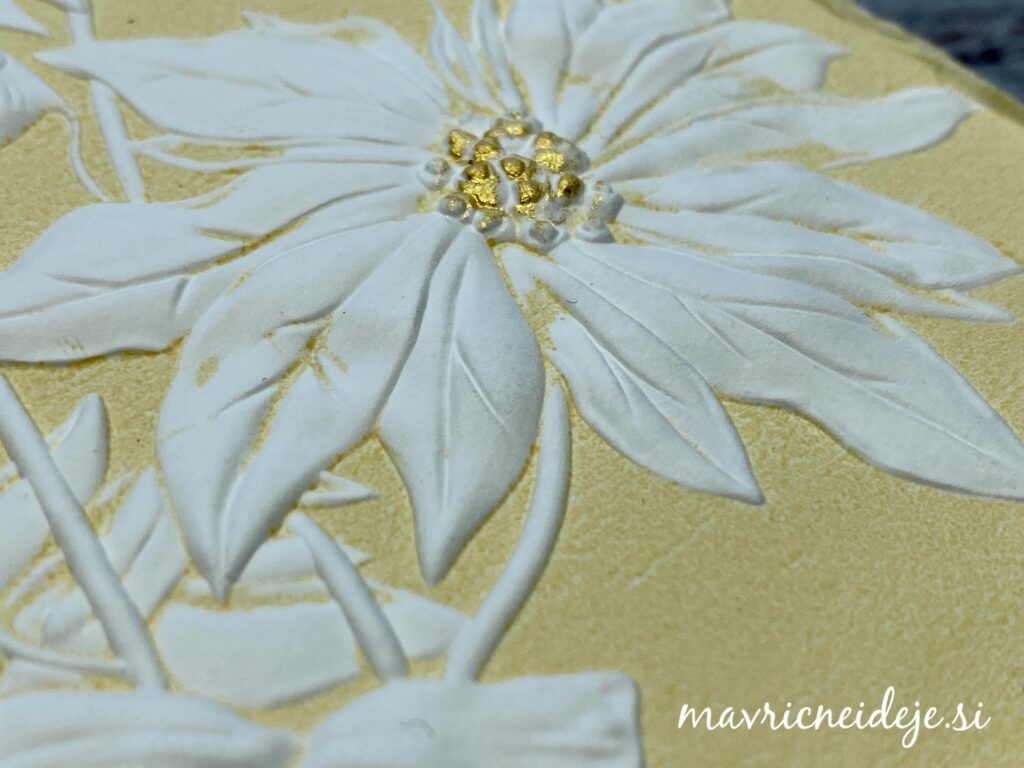 Kot sem pokazala v Life javljanju na FB Darilnica Klavdija sem z belo blazinico nežno osenčila najbolj dvignjene dele embosiranega motiva.