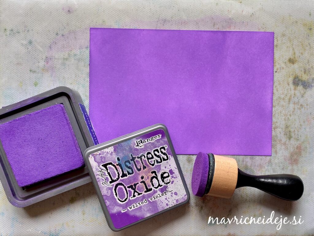 Tokrat sem z Distress Oxide blazinico pobarvala Color Copy papir.
