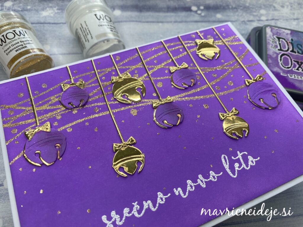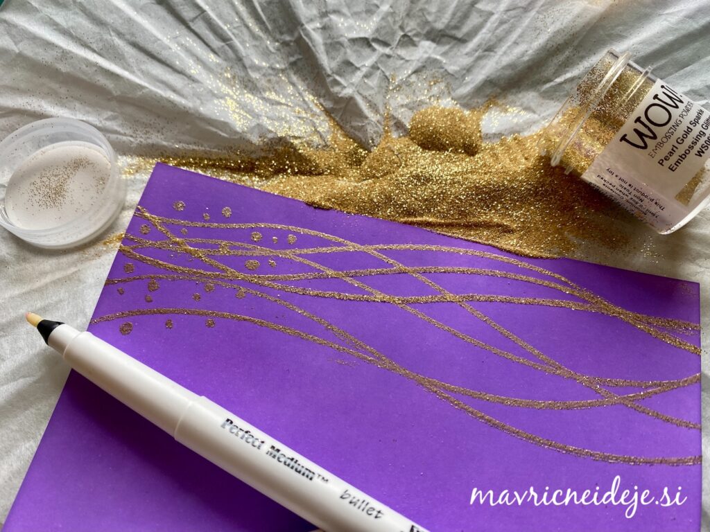 Z embosing pisalom sem narisala vijuge in jih vroče embosirala z WOW! Pearl Gold Sparkle prahom.