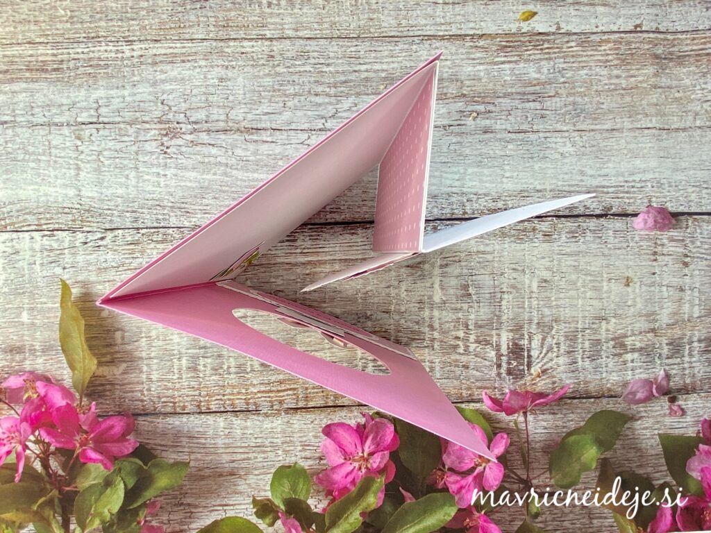 Voščilnica se v celoti odpre in se lepo plosko zapre, da jo lahko vstavimo v ovojnico in pošljemo po pošti. Za Izdelavo sem porabila tri liste in še so mi ostali uporabni koščki.
