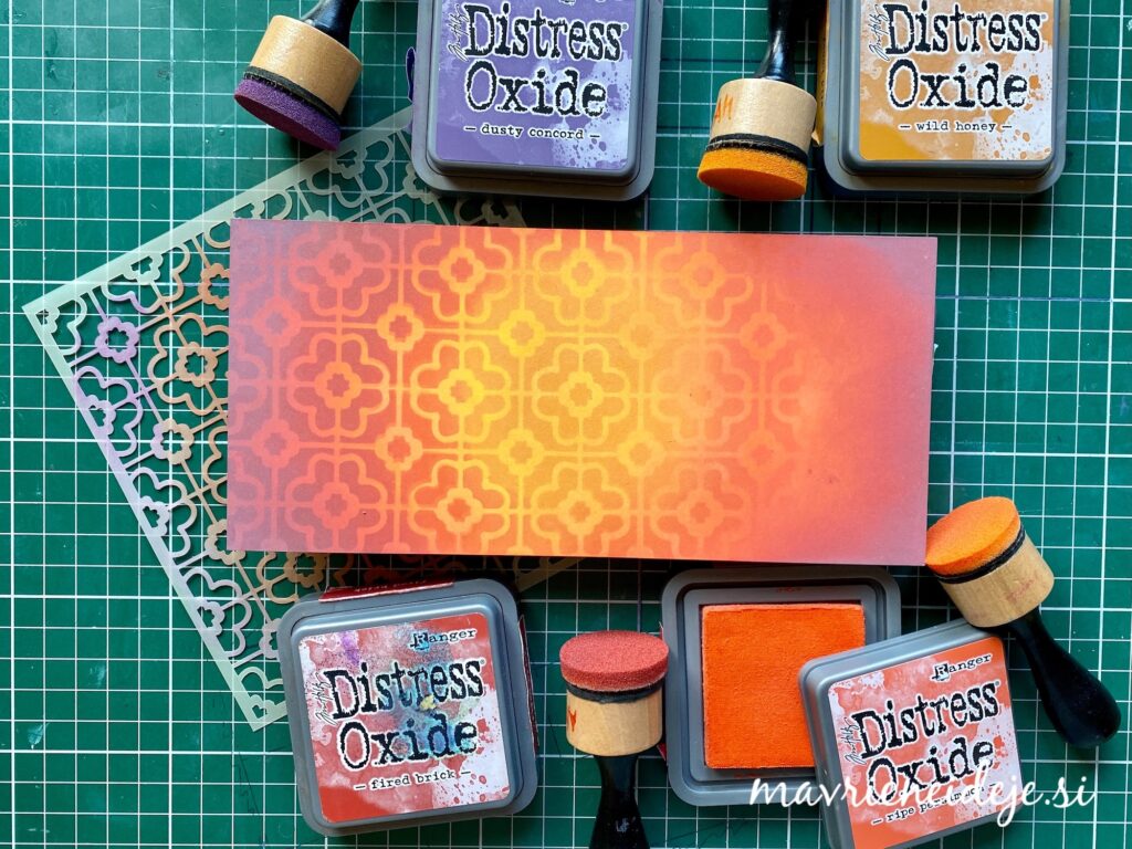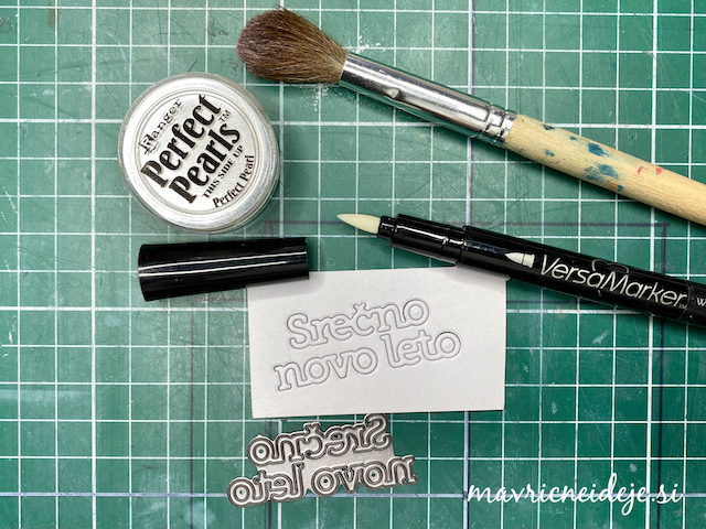Uporabila sem bel papir, rjavo blazinico in štampiljke s pripadajočimi šablonami, vrvico in iz redečega bleščečega papirja izrezan srček.