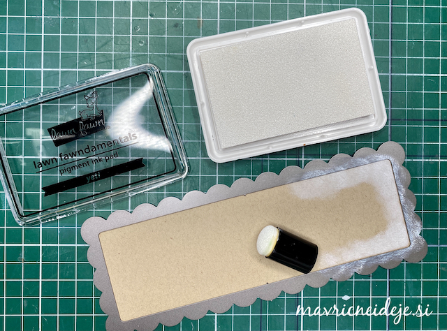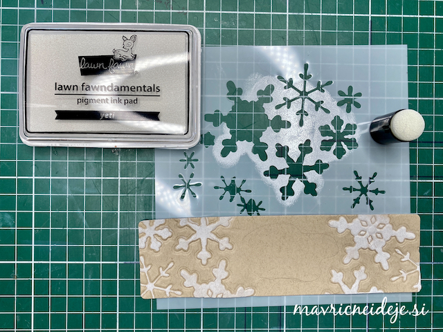 Uporabila sem bel papir, rjavo blazinico in štampiljke s pripadajočimi šablonami, vrvico in iz redečega bleščečega papirja izrezan srček.