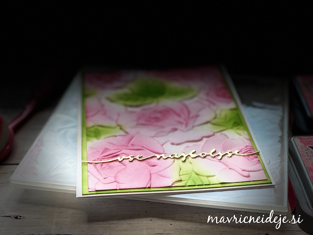 Pozdravljeni v sobotno jutro. V tokratnem izzivu bomo sestavljali voščilnice na kateri se mora vsaj en element premikati. Izdelala sem voščilnico s premikajočim venčkom.