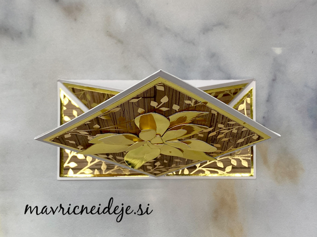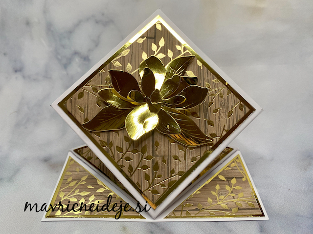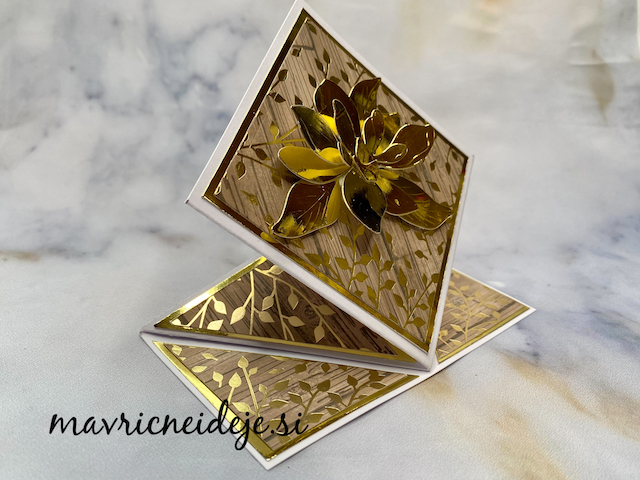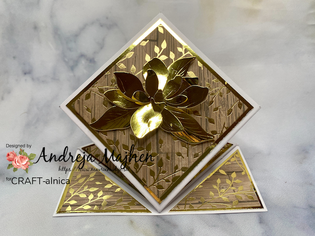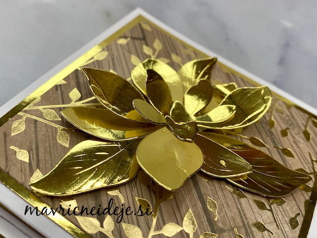 Magnolijo (Najlepši Par) sem izrezala iz zlatega papirja v videzu ogledala, ki se ujema z vzorcem na Craft Passion papirju.