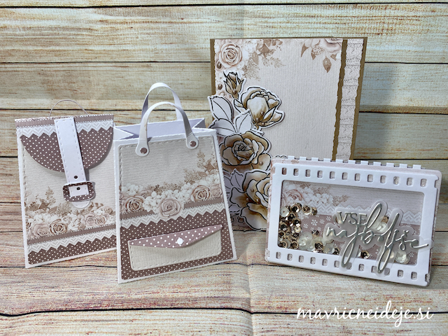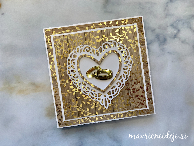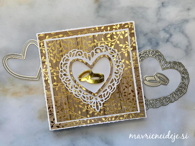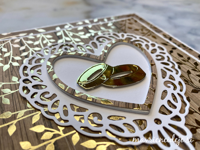 Tokrat sem združila rezalno šablono Najlepši Par in krasne papirje LemonCraft Gentlemen (30x30cm). Vse elemente sem izrezala iz obojestranskega papirja, ki prenese tudi prepogibanje in dodala le nekaj izrezov iz iste kolekcije. Vse ostalo naj povedo fotografije.