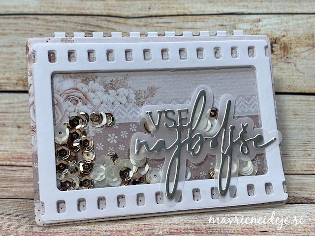 Uporabila sem še rezalno šablono za napis in štampiljko vrtničnih listov ( bel embosing na paus papir), oboje Najlepši Par.