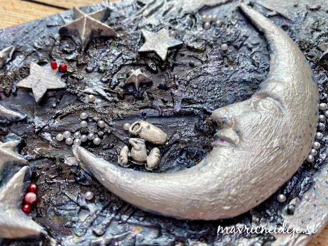 Nato sem nalimala izreze in okoli njih nanesla otroški plastelin – Foam Clay, ki ima pikice in se na zraku lepo posuši. Plastelin je lepljiv, vendar…