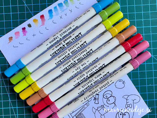 Materal sem omejila na akvarelni papir, Distress voščenke in izreze iz lepenke – morski motivi.