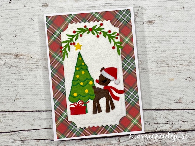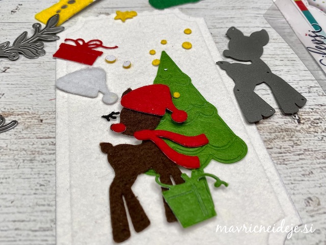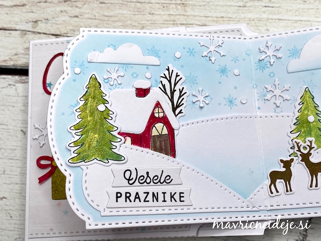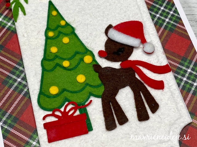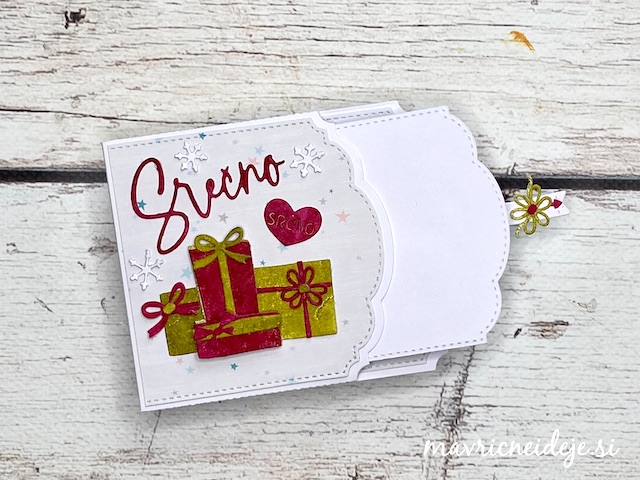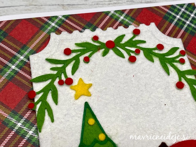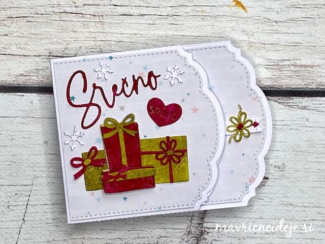 Izbrala sem zelo enostavno barvno kombinacijo s pokico zlate in rdeče. Dekorativni element se je med fotografiranjem malo zmaknil, saj lepilo še ni bilo suho.
