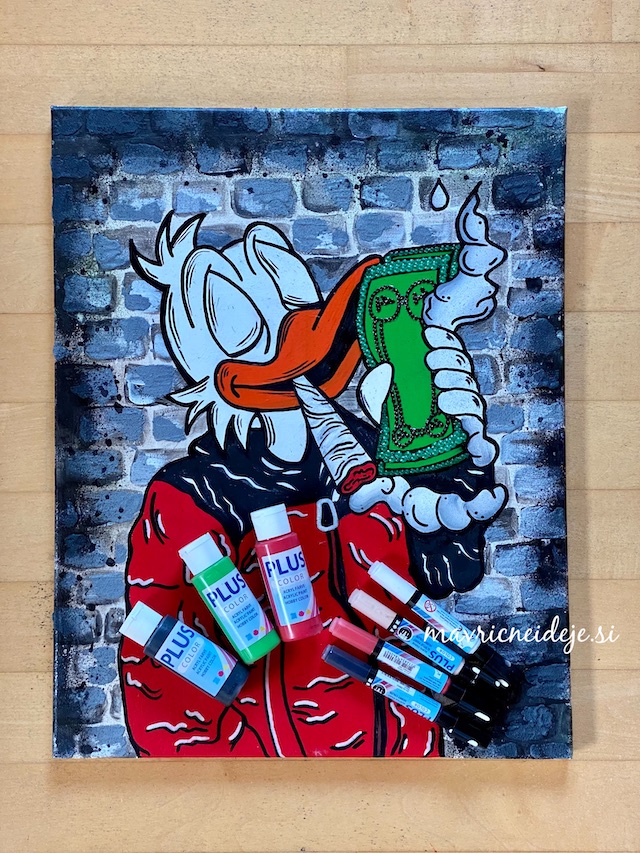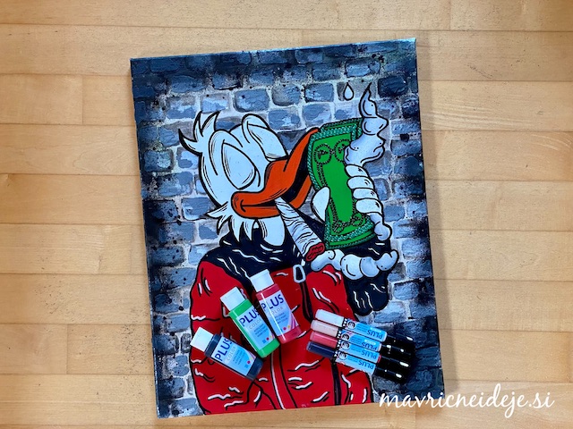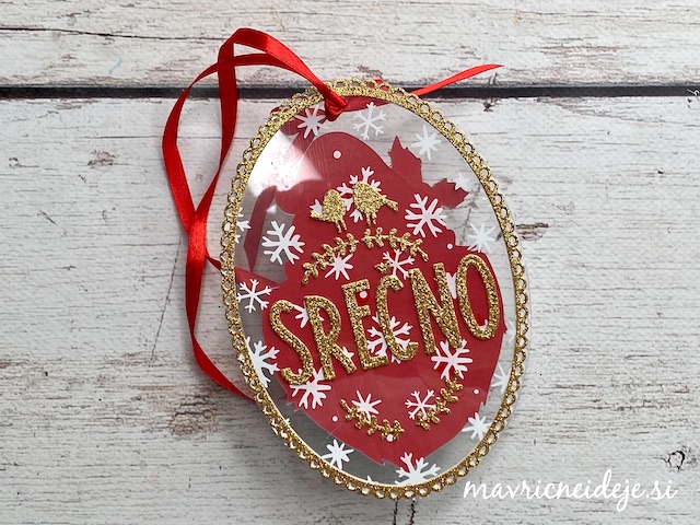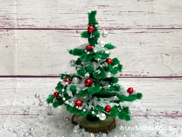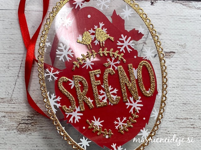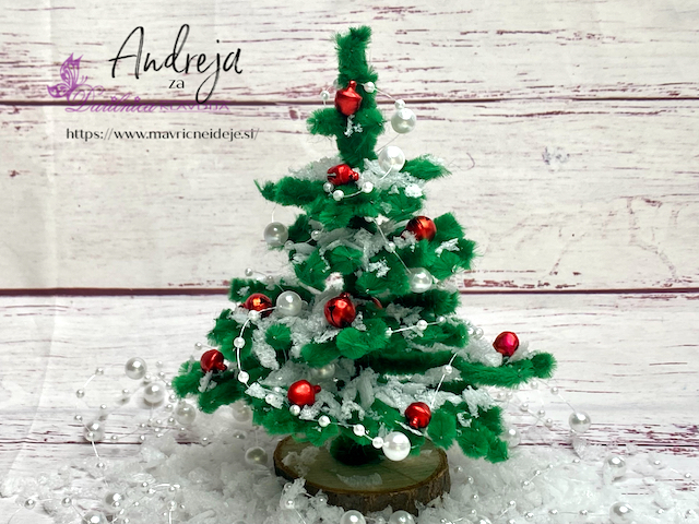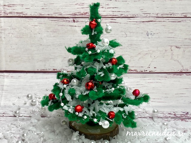 Dodala sem še napis in bele pikice – snežinke z belim markerjem.