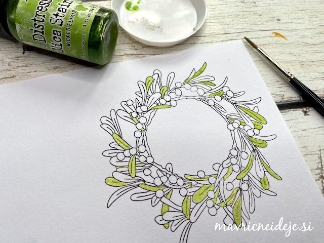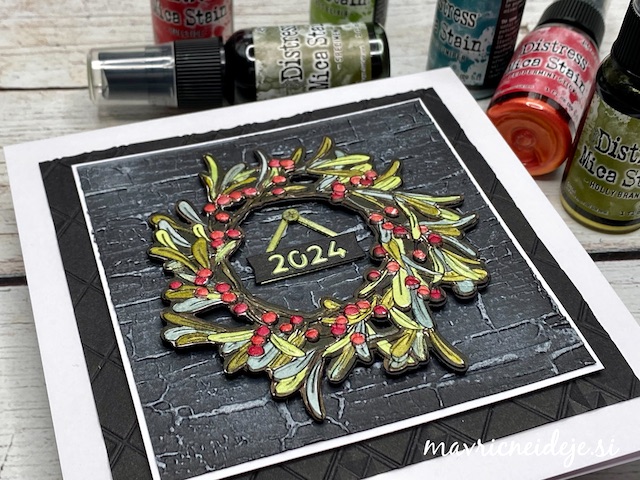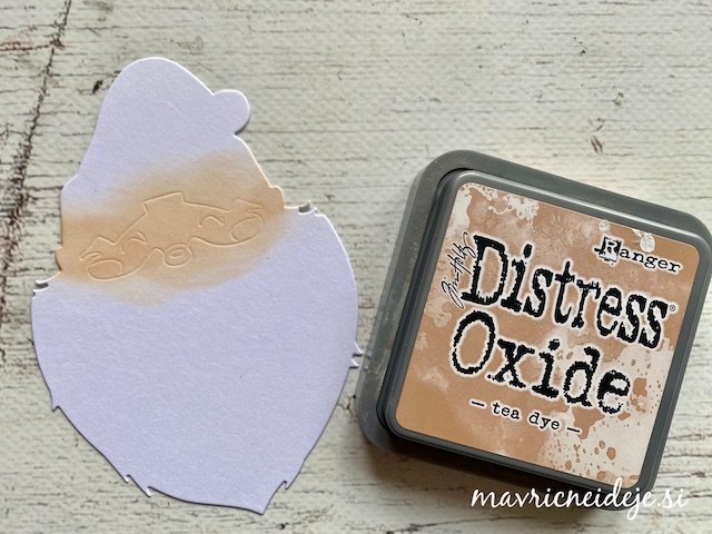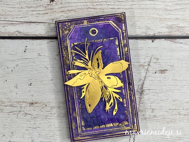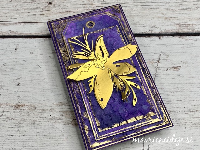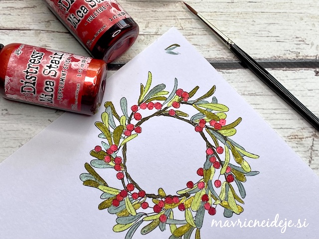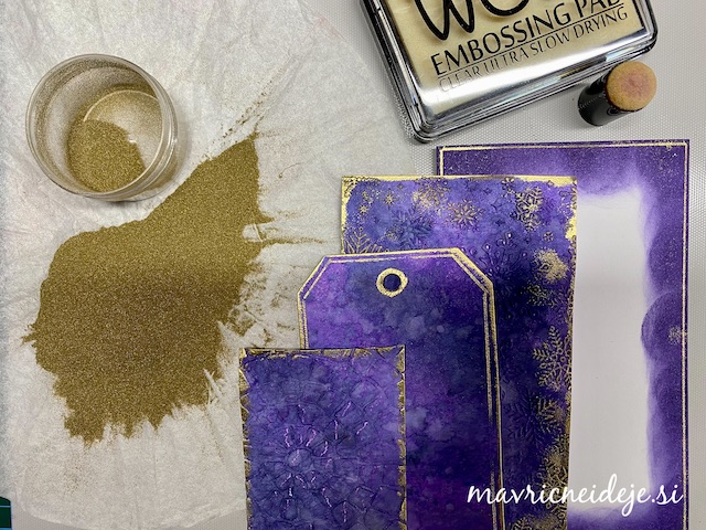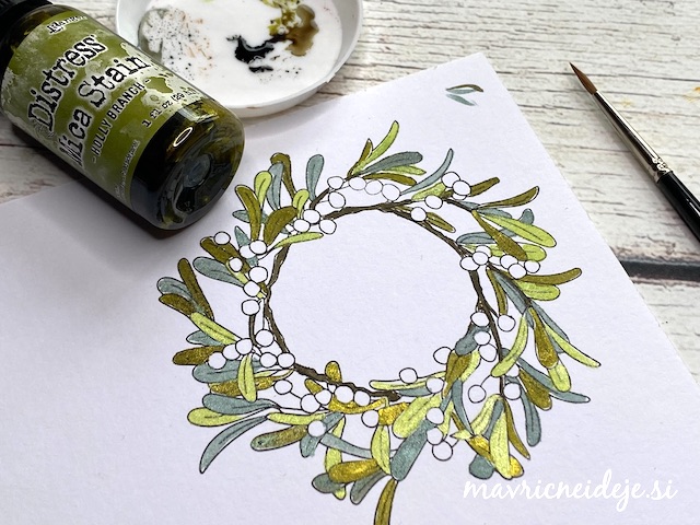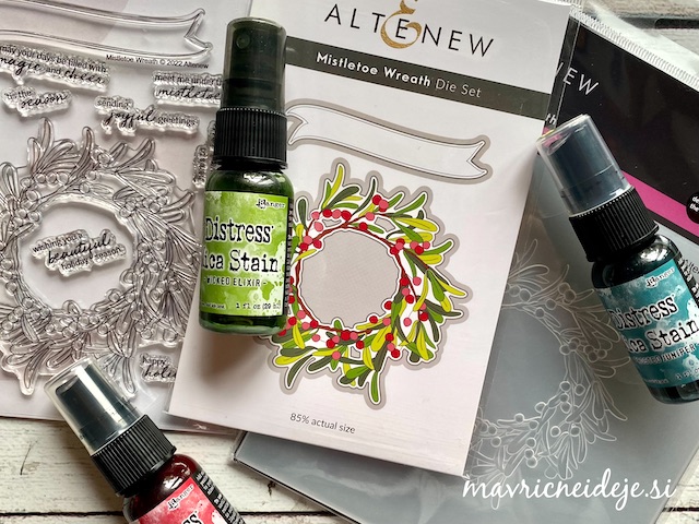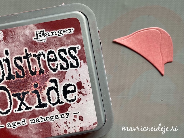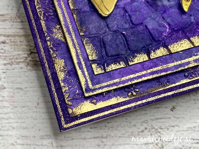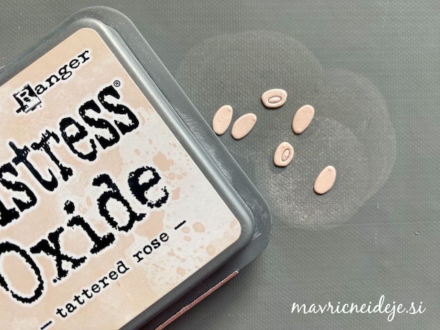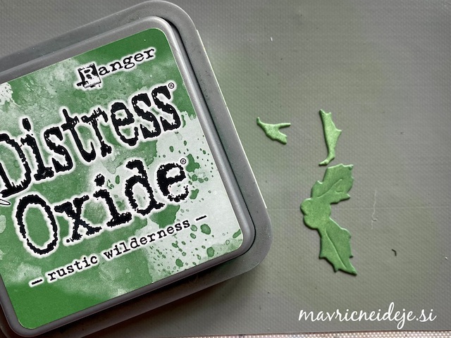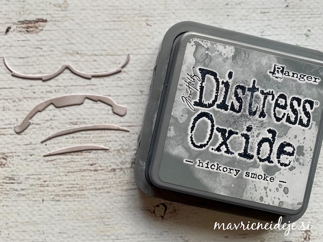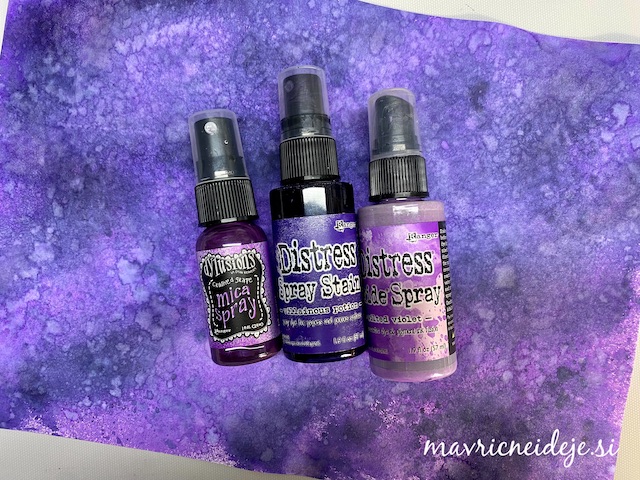 Za barvanje sem uporabila Distress miza stain spreje, ki so močno pigmentirani in se čudovito perlasto bleščijo.