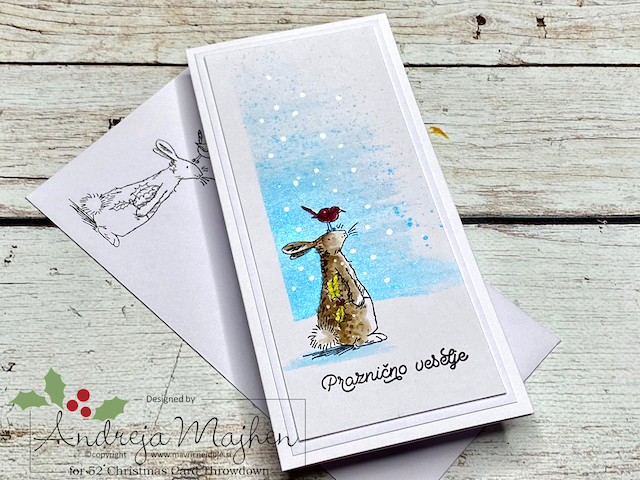 Rosi: Such a wonderful CAS Christmas card! Love that cute bunny and its friend birdie! Rosi xx