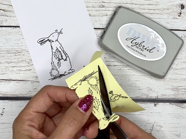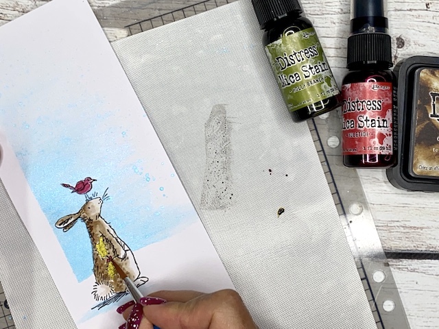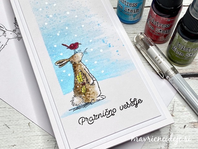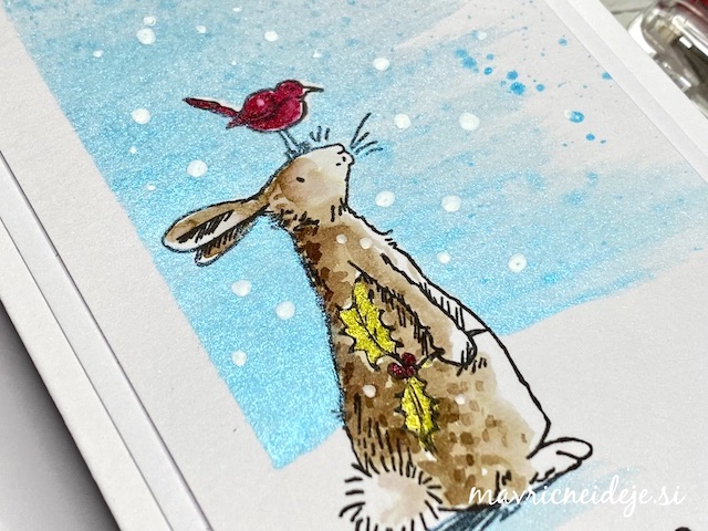 Zajca sem pobarvala z Distress ink rjavo blazinico.