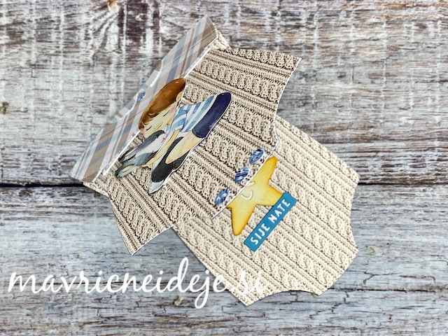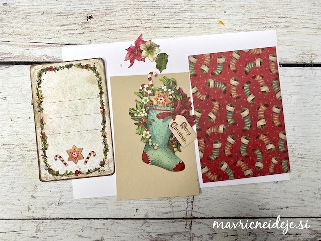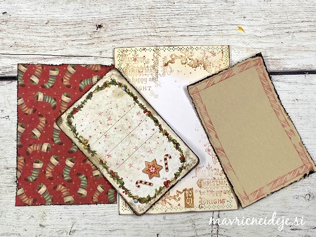 Šablona za ozadje je narejena za običajno velikost voščilnice, zato sem si pripravila dva papirja in ji enostavno združila v DL velikost.
