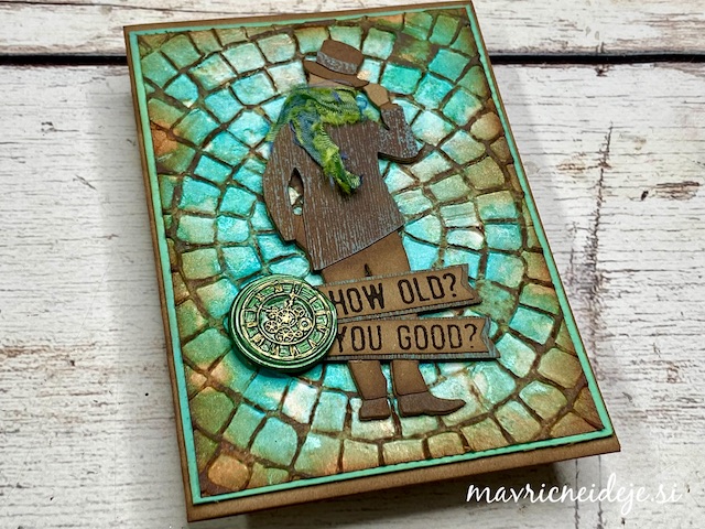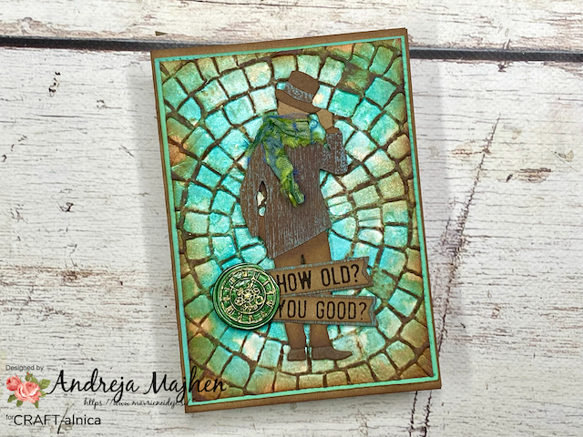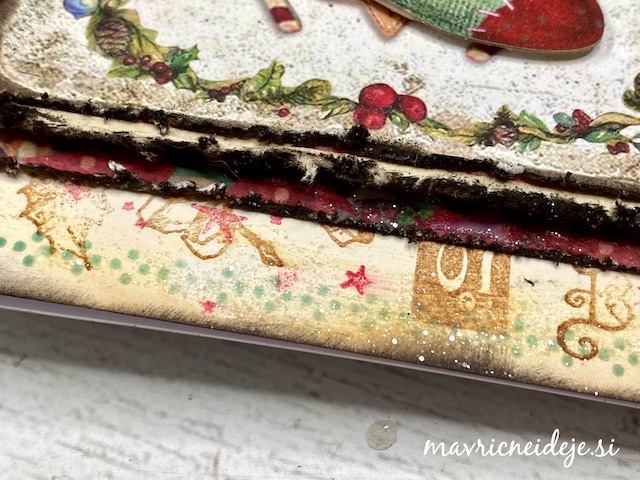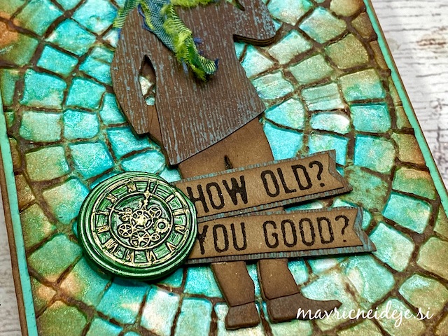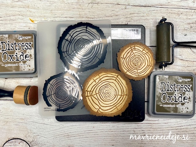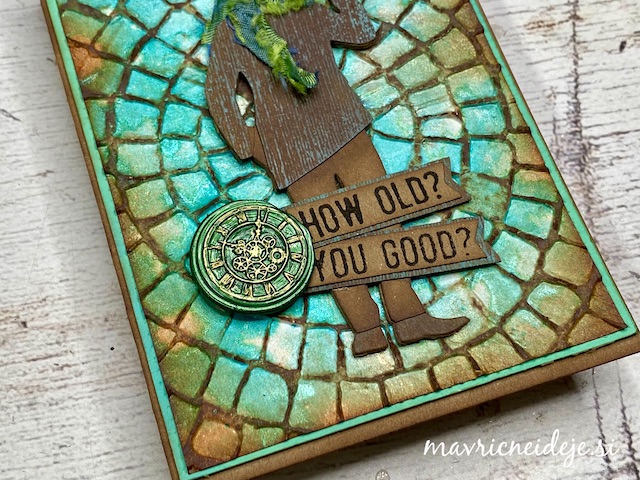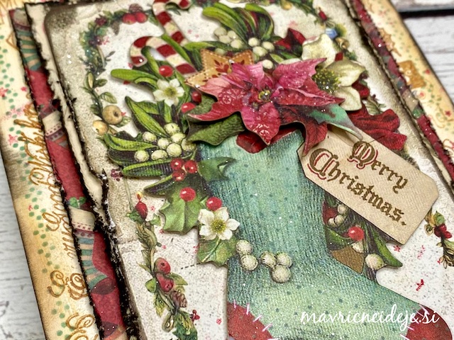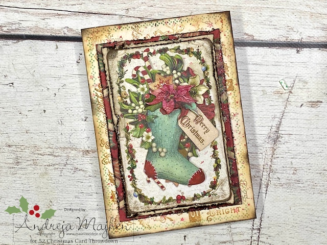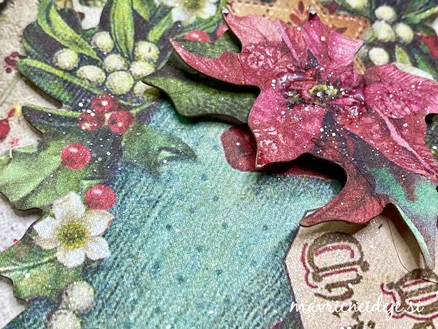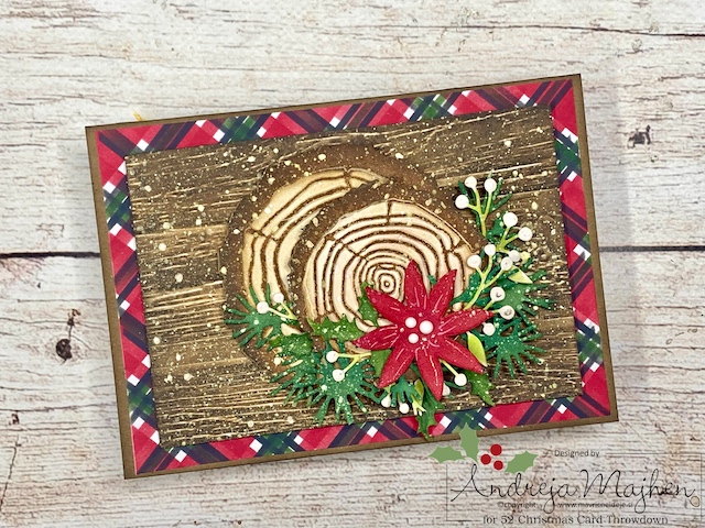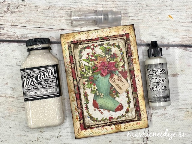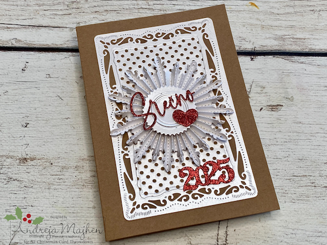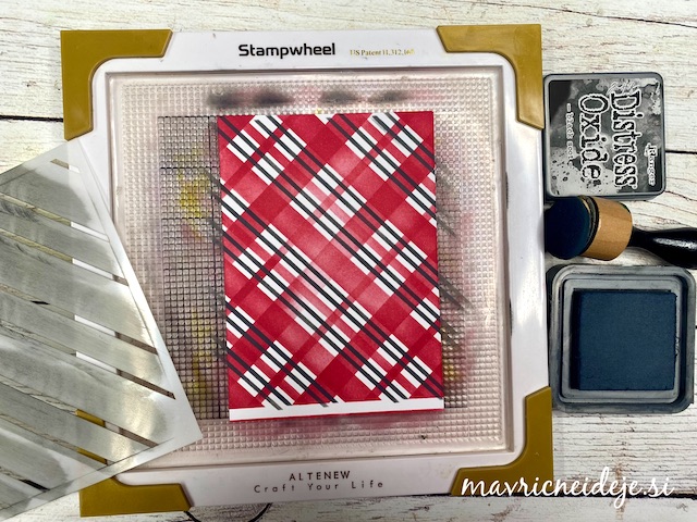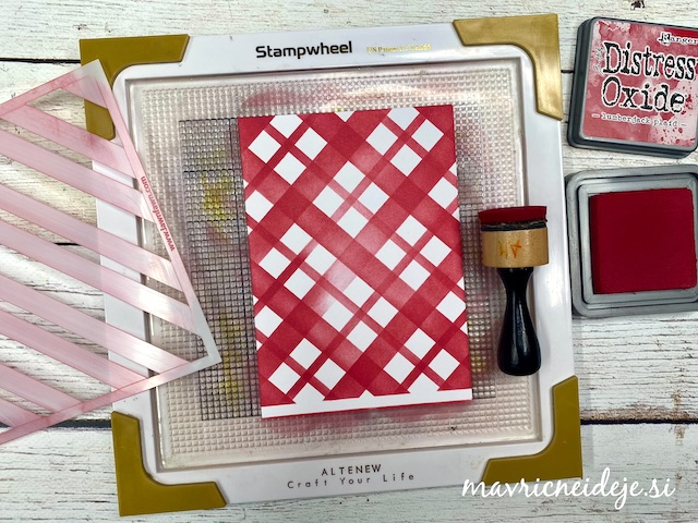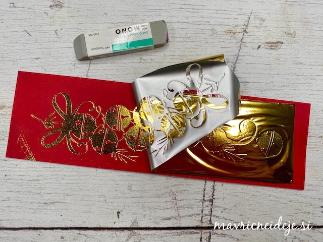 GLIMMER HOT FOIL System, pripomoček za toplotni transger folije mi je vedno bolj všeč, saj daje res lepe bleščeče rezultate. Tokrat sem izbrala rdeče zlato kombinacijo. Z grobo radirko lahko odstranimo morebitne prekomerne nanose folije.