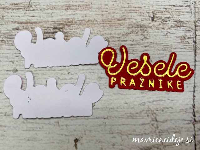 Pod rdeč napis sem podložila dva bela izreza in ju zamaknila tako, da spodaj in zgoraj kukata izpod rdečega izreza.