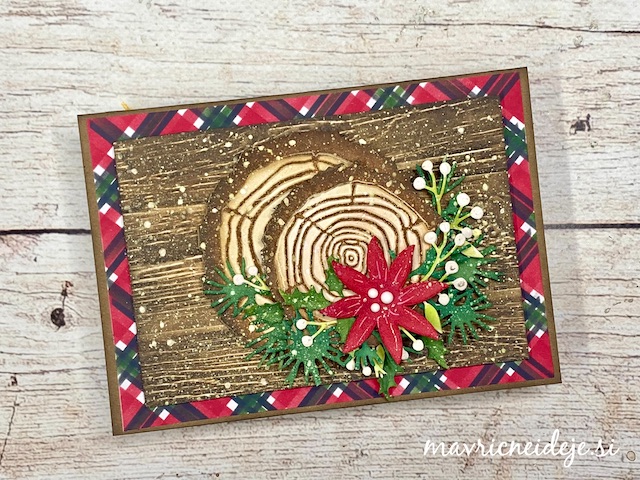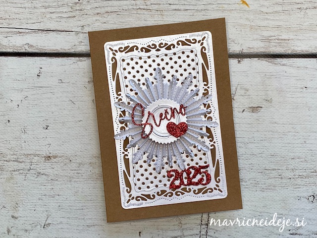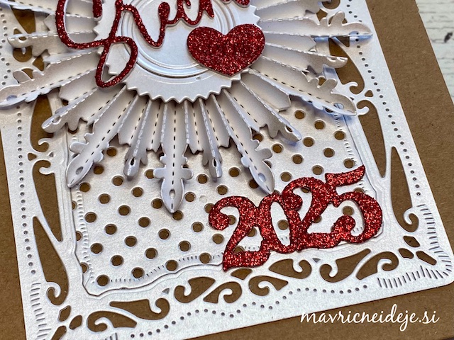 GLIMMER HOT FOIL System, pripomoček za toplotni transger folije mi je vedno bolj všeč, saj daje res lepe bleščeče rezultate. Tokrat sem izbrala rdeče zlato kombinacijo. Z grobo radirko lahko odstranimo morebitne prekomerne nanose folije.