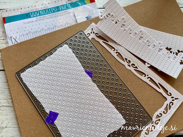 Šablona za ozadje je narejena za običajno velikost voščilnice, zato sem si pripravila dva papirja in ji enostavno združila v DL velikost.