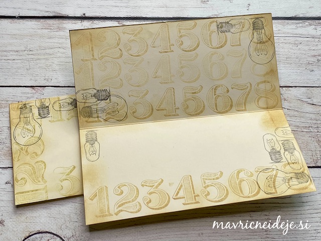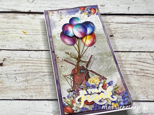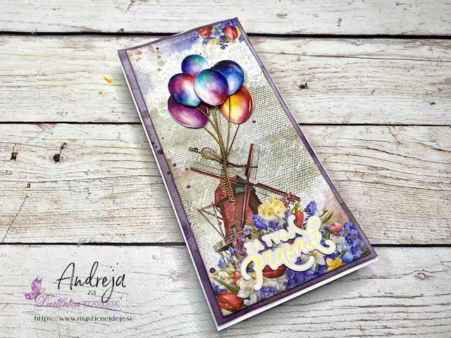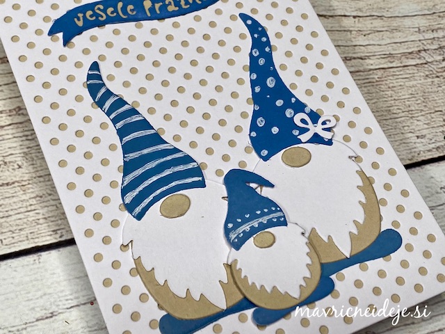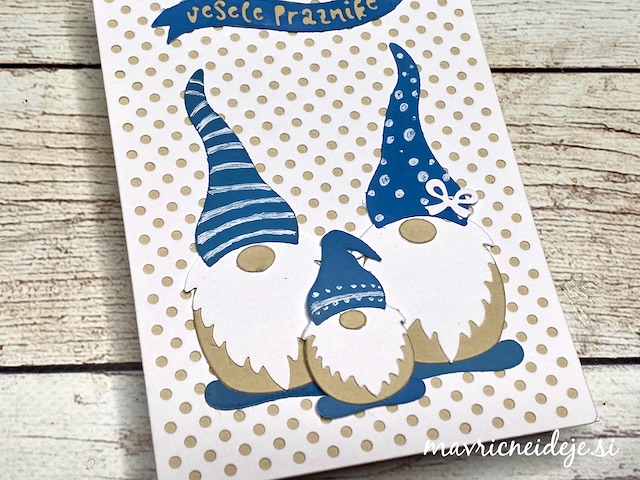 Zastavice sem zalimala eno na drugo. Zlate izreze črk sem podložila z izrezi iz 300g papirja. Dodala sem še zastavici z voščilom.