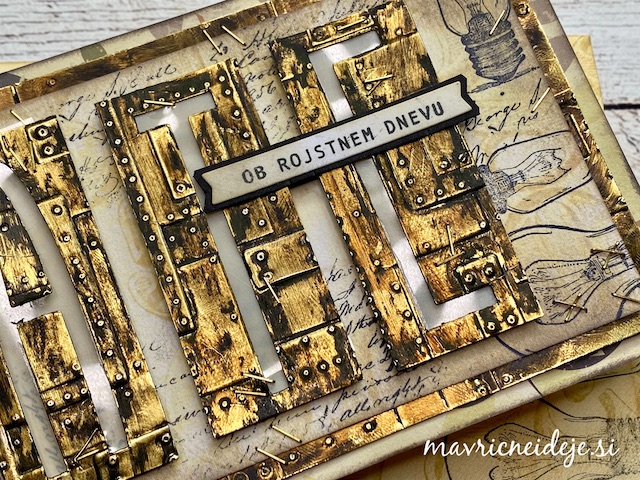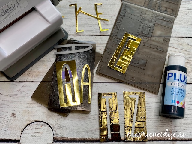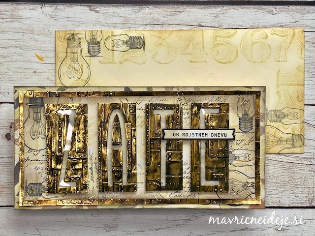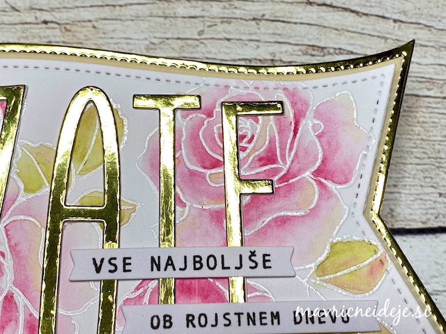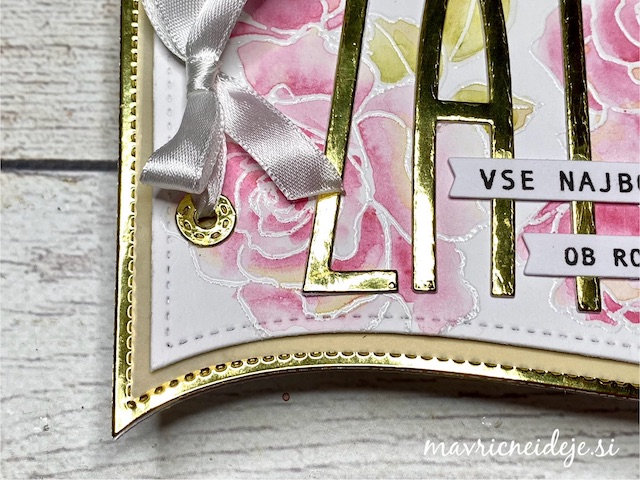 Velike črke se lepo podajo tudi na nežne cvetlične voščilnice. Izrezi črk iz zlatega papirja, ki so mi ostali pri izdelavi MOŠKE voščilnice so ravno pravšnji za nežno voščilnico v obliki zastavice.