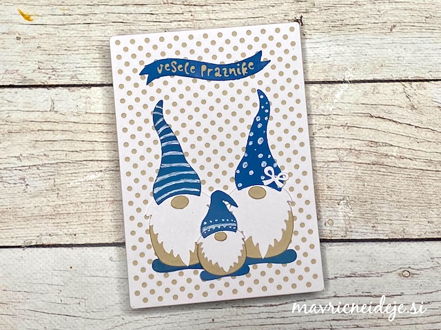 Zastavice sem zalimala eno na drugo. Zlate izreze črk sem podložila z izrezi iz 300g papirja. Dodala sem še zastavici z voščilom.