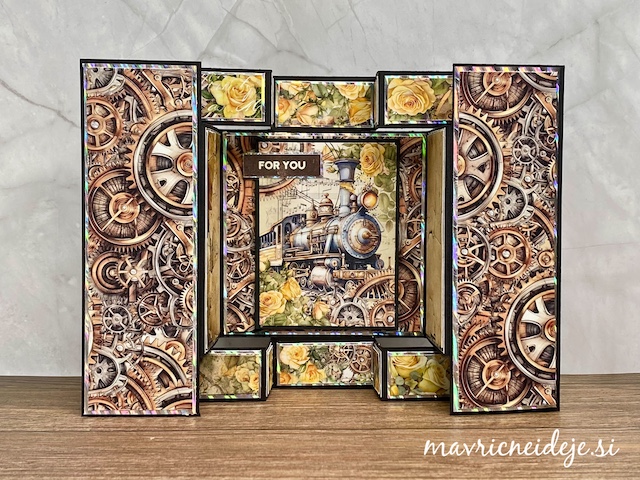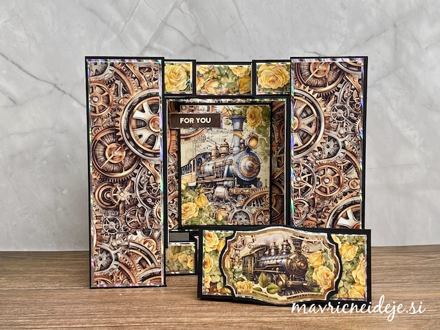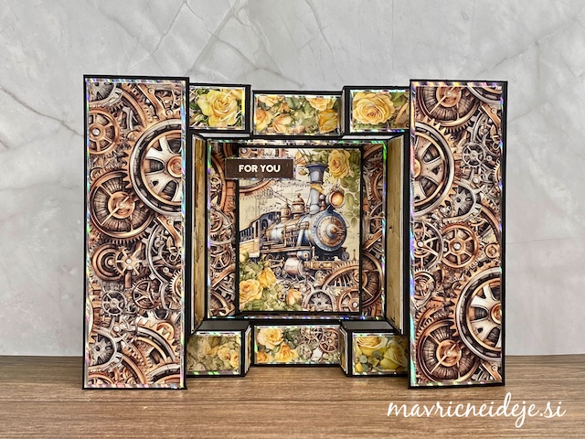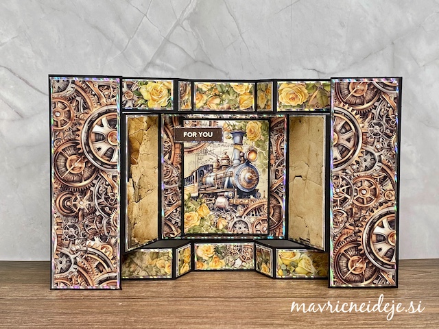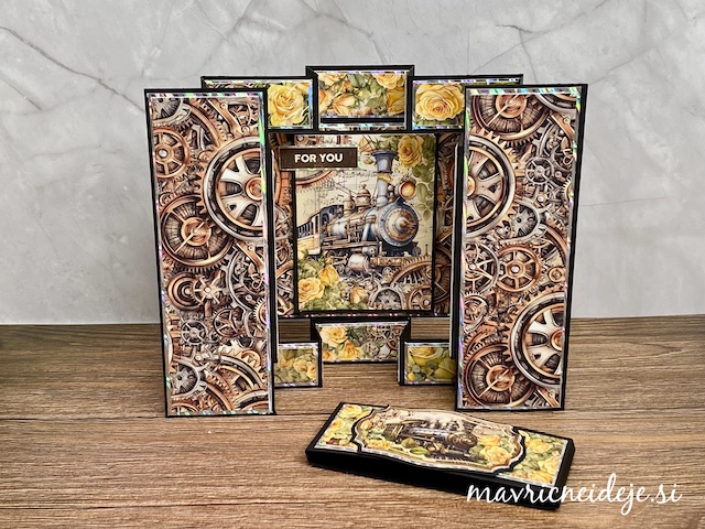 Nato je sledilo sestavljanje. Navodila za izdelavo sem našla tukaj DOUBLE BENDY CARD.