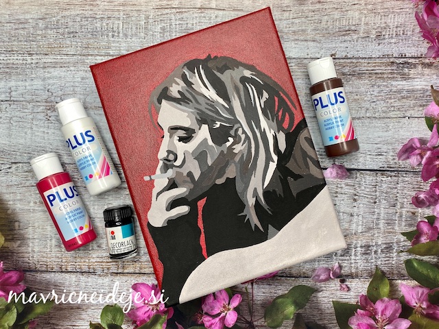 V Darilnica Klavdija je na voljo tudi cel kup različnih akrilnih barv in slikarrskih pripomočkov. Hči Aurora (18) si je z njimi naslikala platno, čisto v njenem stilu.