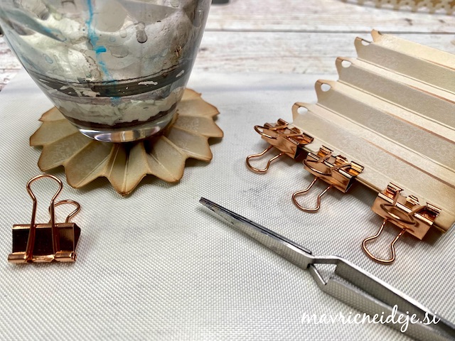 Močno glossy lepilo sem uporabila za fiksiranje prozornih bleščic.