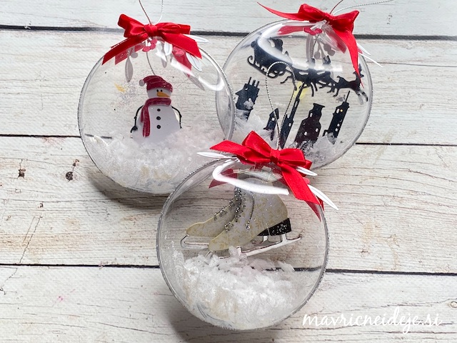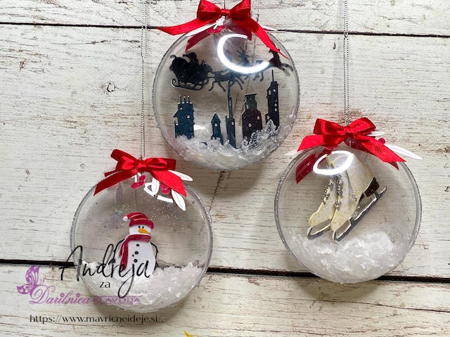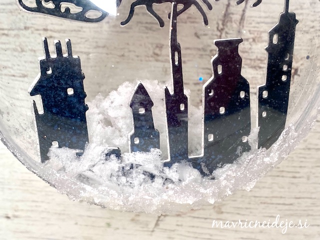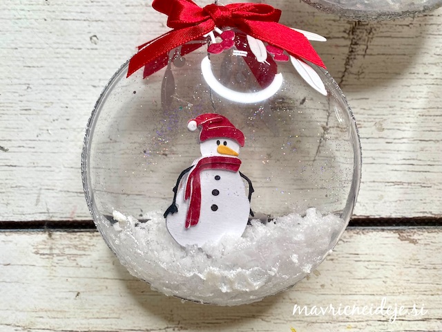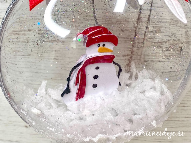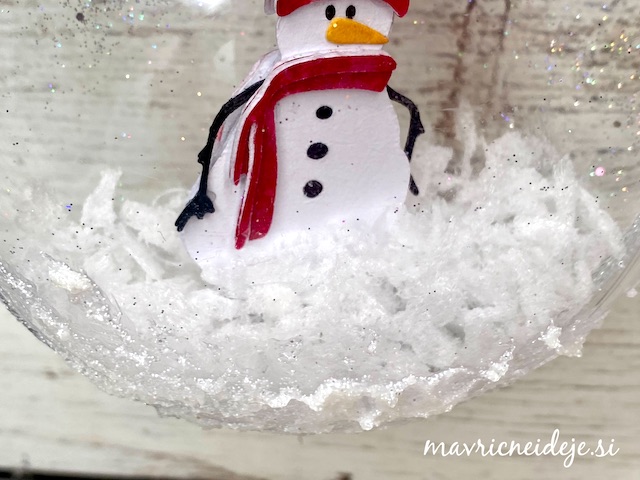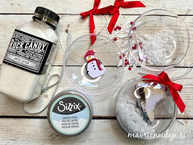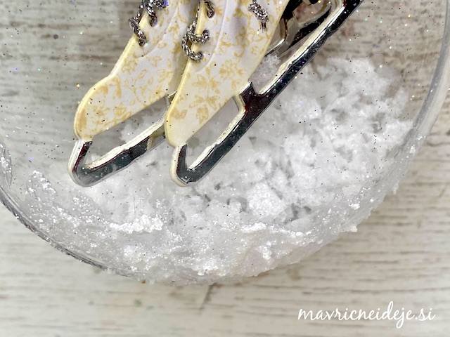 Na snežinko sem dodala prozorne bleščice – kamnečke in v prahu.