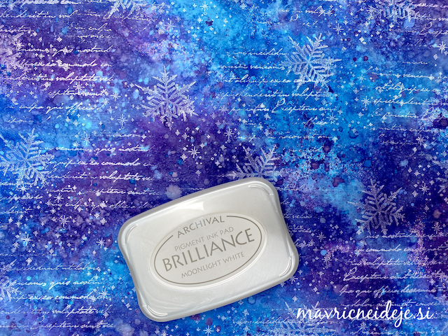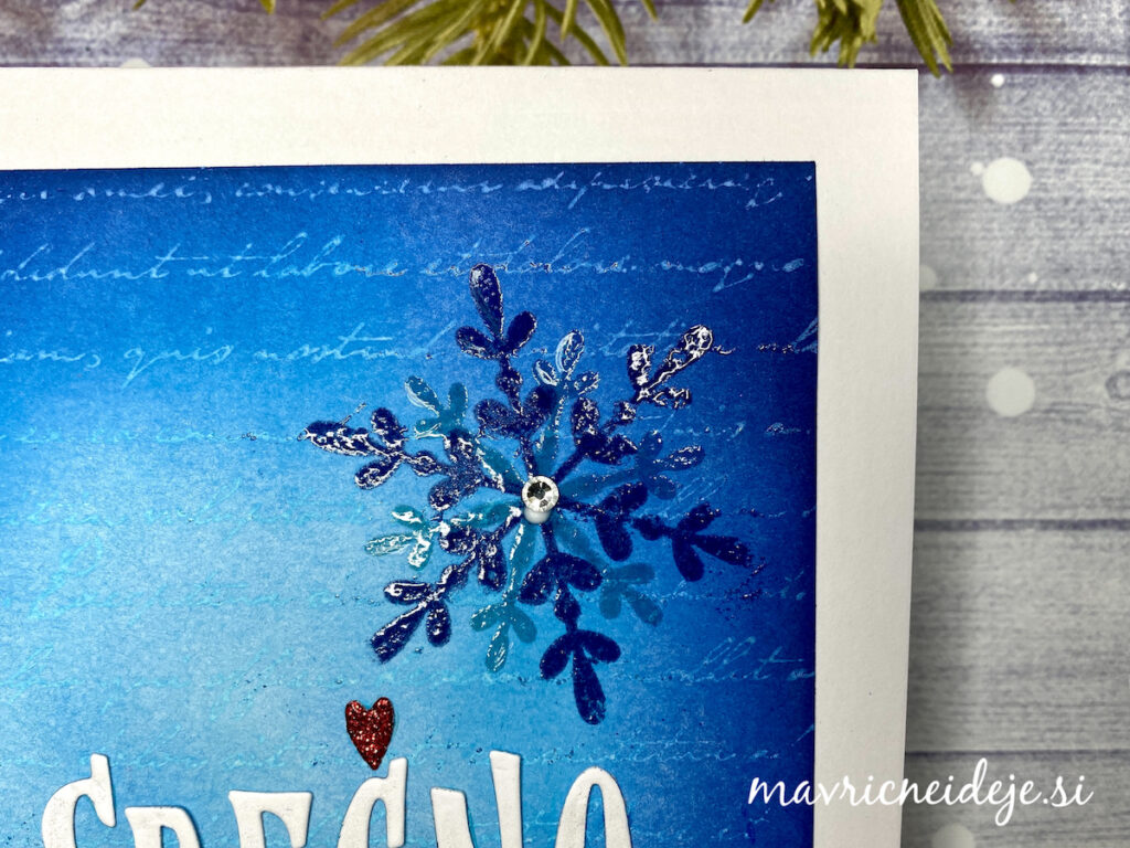 Za embosiranje sem izbrala ujemajoče Distress glaze prahce, ki so prosojni in se zato skoznje lepo vidi vzorec na izrezu. Namenoma sem naredila nepopolne odtise.