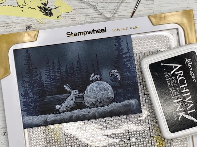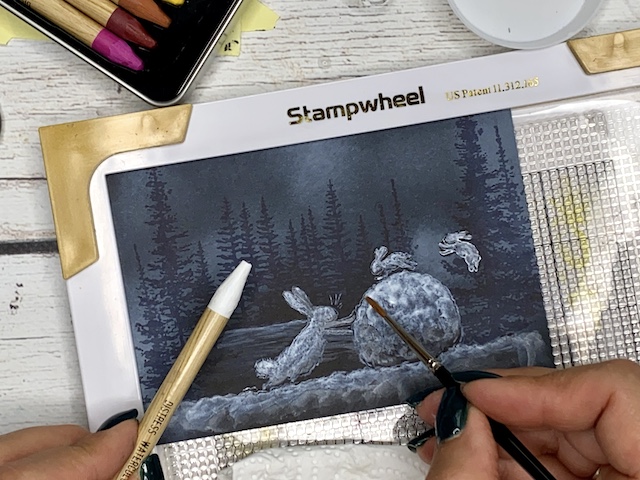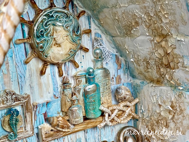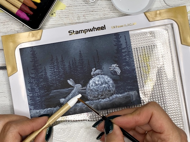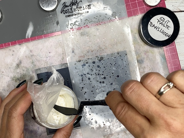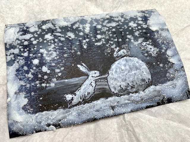 Med sušenjem teksturne paste sem na belo snežinko (ulitek iz smole) nanesla črn gesso.