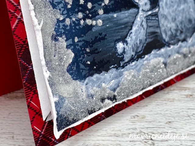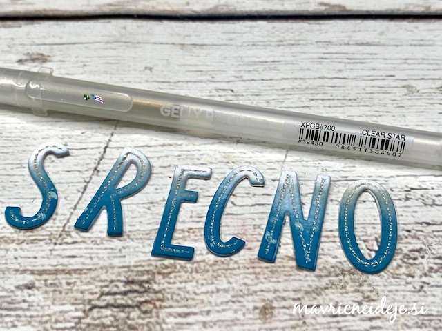 Močno glossy lepilo sem uporabila za fiksiranje prozornih bleščic.