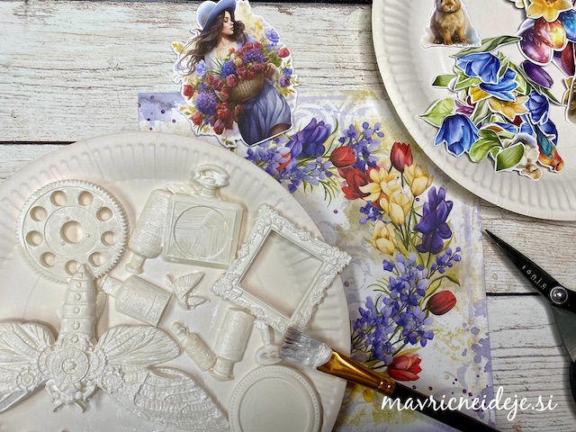 - dekorativni elementi – ulitki iz smole (finnabair silikonski modeli)
