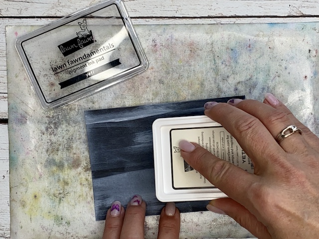Polnila za barvne blazinice ponavadi res uporabimo le za to, da z njimi osvežimo porabljene ali izsušene blazinice. Tokrat sem jih uporabila za barvanje. Na črn papir sem jih nanašala s koščkom grobe gospodinjske gobice, da sem dobila dodatne teksture in vzorce.