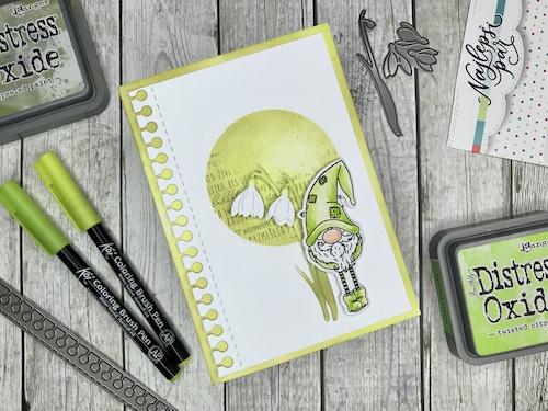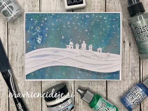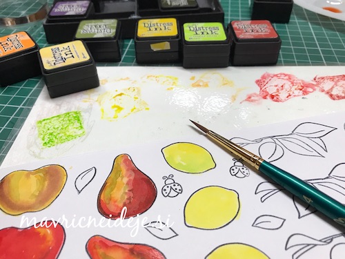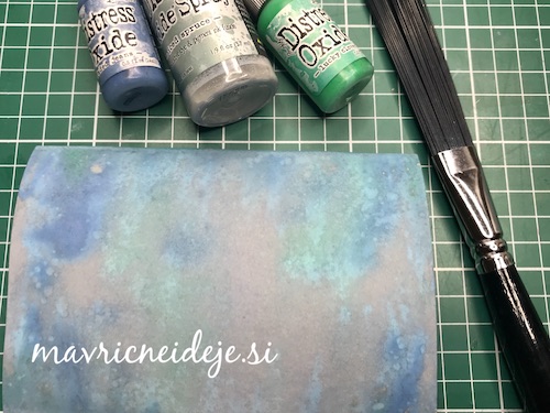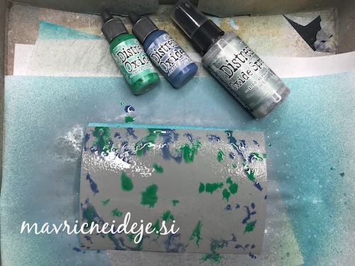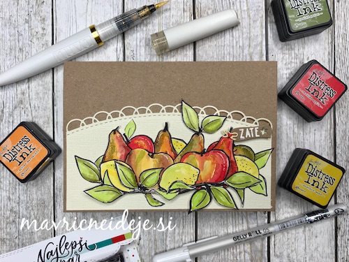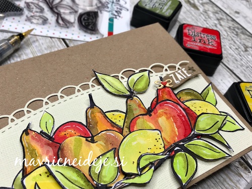 Škrata sem Pobarvala s Koi Coloring Brush markerji, vse ostalo pa z Distress Oxide Twisted Citron in Peeled Paint.