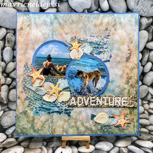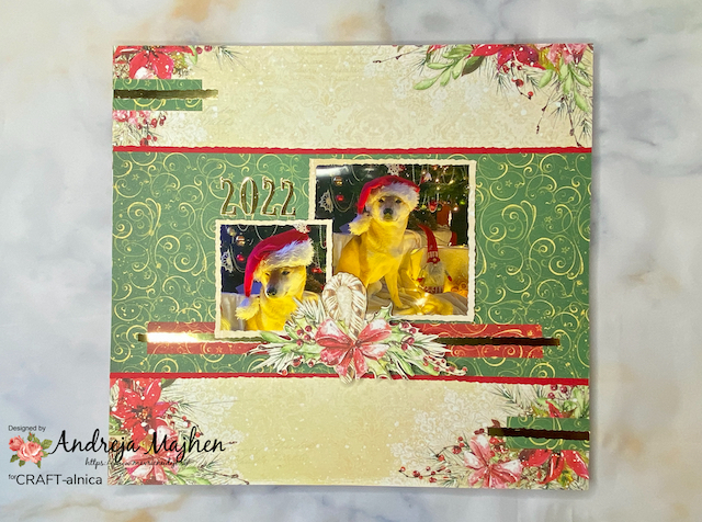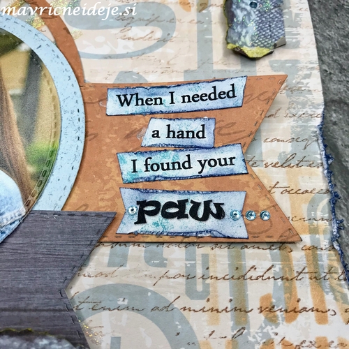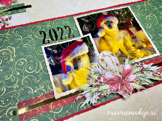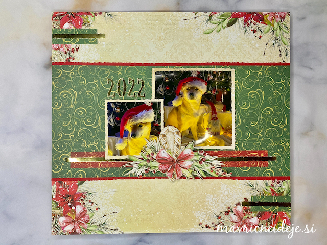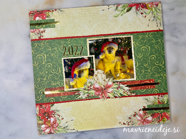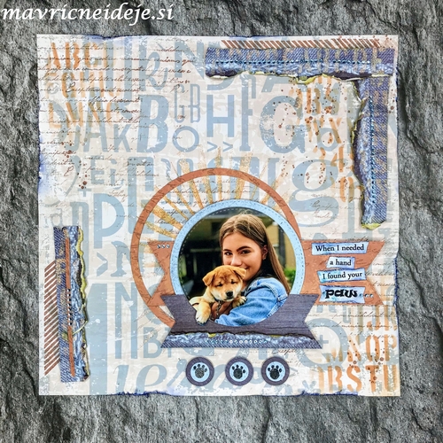 Izbrala sem dve fotki našega štirinožca, ju obrezala in vstavila v stran, kot narekuje skica.
