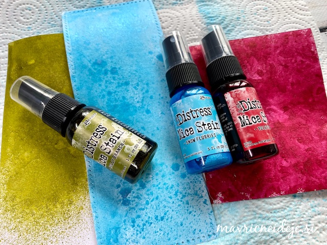 Vse ostale drobne izreze sem barvala na leplivi podlagi Altenew Stampwheel, saj tako prsti ostanejo čisti in se izrezi ne zmečkajo.