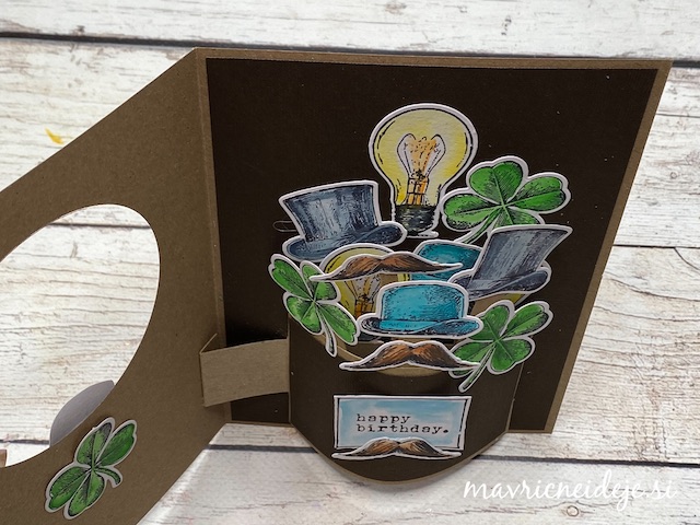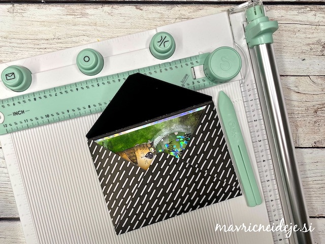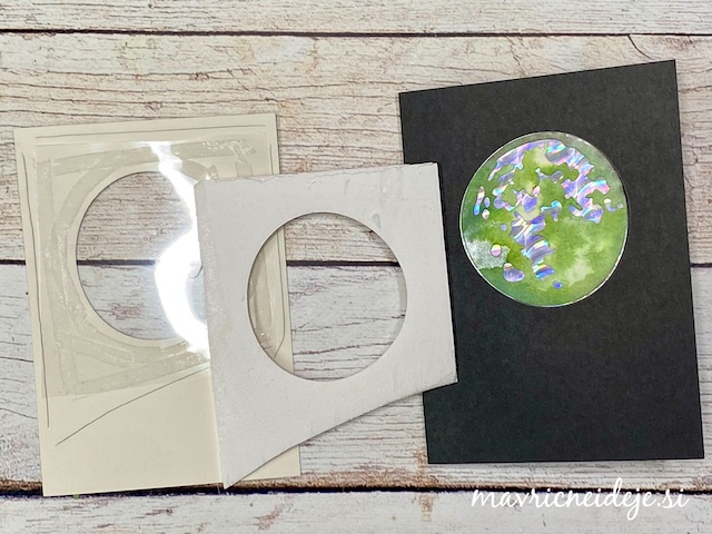 Pod osrednji motiv sem podložila črn papir, ki sem ga nemanoma namestila postrani in nato vse skupaj na pobarvan papir.